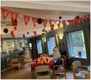 We celebrated by having a Chinese menu for lunch with lots of decorations made by our residents.